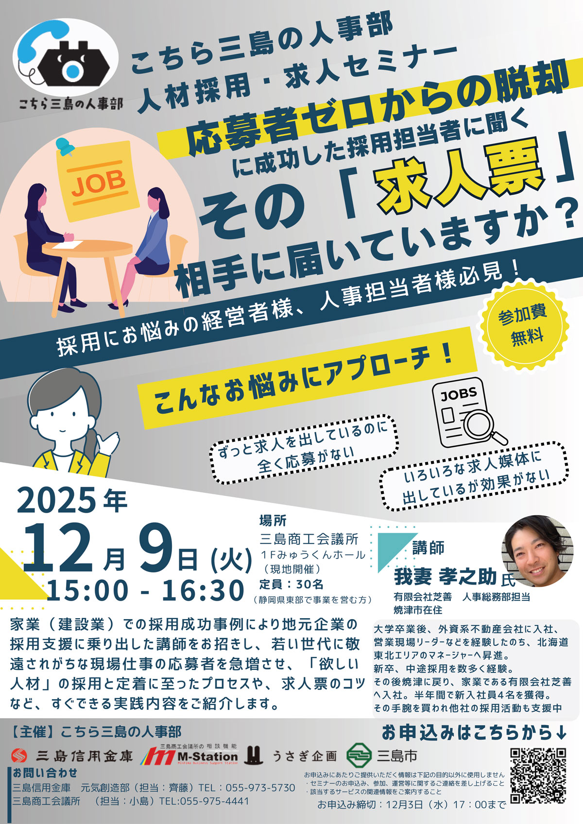 いつでもお気軽に「三島の人事部」のドアをノックして、